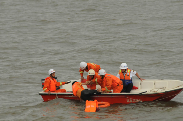 | 8月26日上午,以“關(guān)注航行安全、保護水域清潔、共建平安湖南”為主題的“2010年湘江水域水上搜救演習”在湘江長沙杜甫江閣水域舉行。25艘船舶、近300人參加了人命救助、船舶救援、船舶消防滅火、水域油污染控制等搜救演習行動。這是我省首次舉行大型內(nèi)河水上搜救演習。