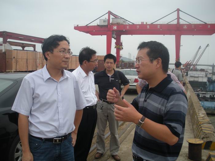 2010年9月8日,湖南省社科院研究員黃海一行在長沙市口岸辦副主任王光輝的陪同下,來長沙新港進(jìn)行長沙水運(yùn)口岸建設(shè)的調(diào)研。 長沙新港有限責(zé)任公司董事秘書、總經(jīng)理助理辛華,長沙集星集裝箱碼頭有限公司總經(jīng)理龔耀南,總經(jīng)理助理周勇,長沙中理外輪理貨有限公司總經(jīng)理周世杰就長沙港口過去 一年的工作成績、工作亮點(diǎn)、存在的困難和問題,及對長沙水運(yùn)口岸建設(shè)與發(fā)展的建議和思路作了匯報(bào)。 |