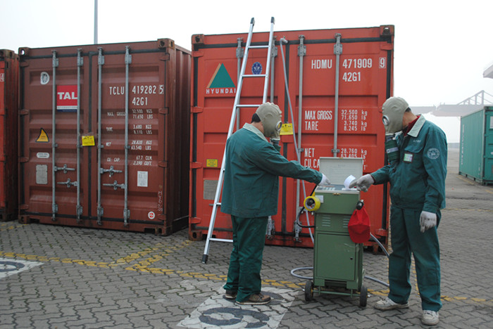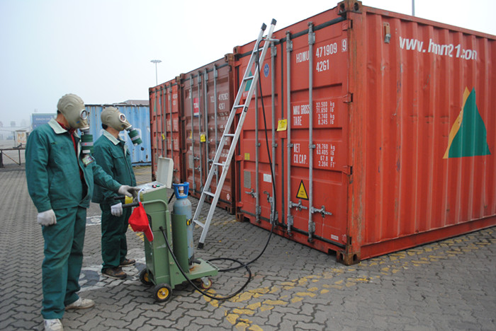 日前,中南地區(qū)第一臺最現(xiàn)代化的“移動式微電腦施藥器”在長沙新港投入使用。近日,湖南省進(jìn)出口檢驗檢疫局技術(shù)人員,在長沙新港首次對國際集裝箱采用封閉式消毒、熏蒸。這是我省使用的第一臺消毒熏蒸設(shè)備,結(jié)束商檢開箱施藥消毒熏蒸的歷史。