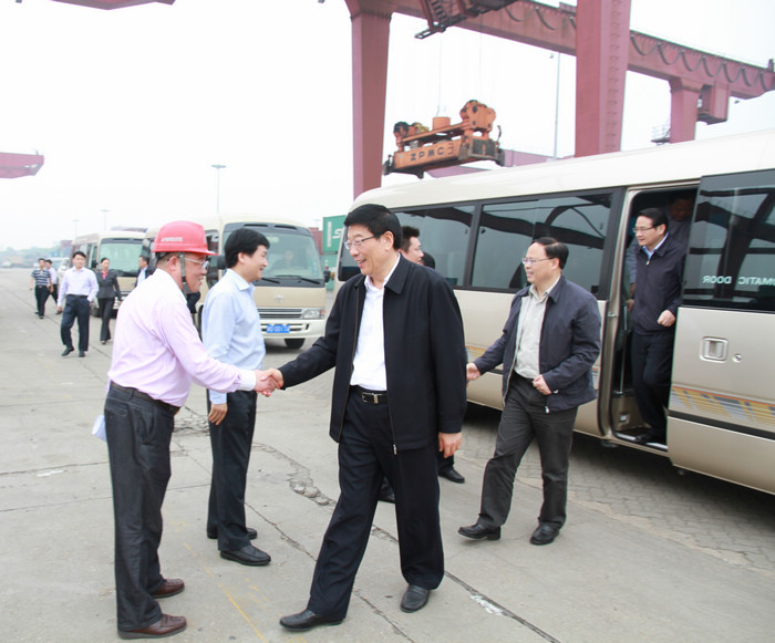5月3日下午,湖南省委書記徐守盛,省委常委、省委秘書長易煉紅,及省信訪局、省發(fā)改委、省經信委、省民政廳、省公安廳、省政府辦公廳等領導一行,在長沙市委副書記、市長張劍飛,市委副書記張迎龍,市委常委、市委秘書長李軍,開福區(qū)區(qū)委書記李蔚,區(qū)委副書記、區(qū)長廖建華,金霞開發(fā)區(qū)黨工委書記張毅,黨工委副書記、管委會主任袁政國等領導的陪同下來長沙新港考察調研。湖南長沙新港有限責任公司董事長、總經理唐忠良,董事、財務總監(jiān)趙赤書,董事、副總經理張韜,董事、長沙集星集裝箱碼頭有限公司副總經理辛華等公司領導接待。