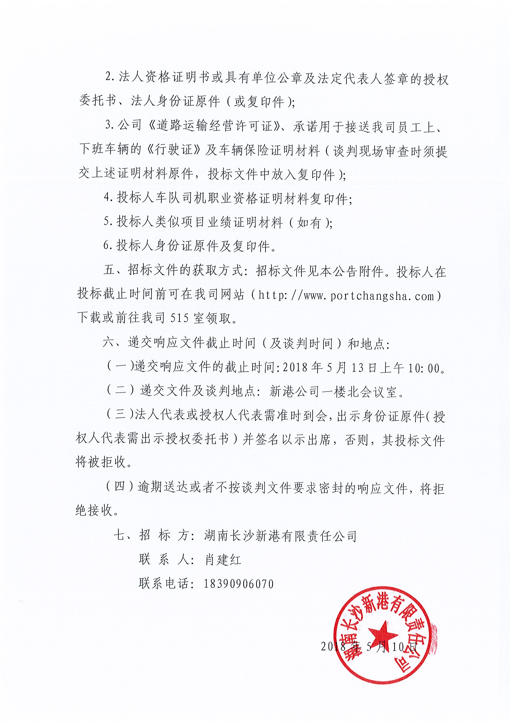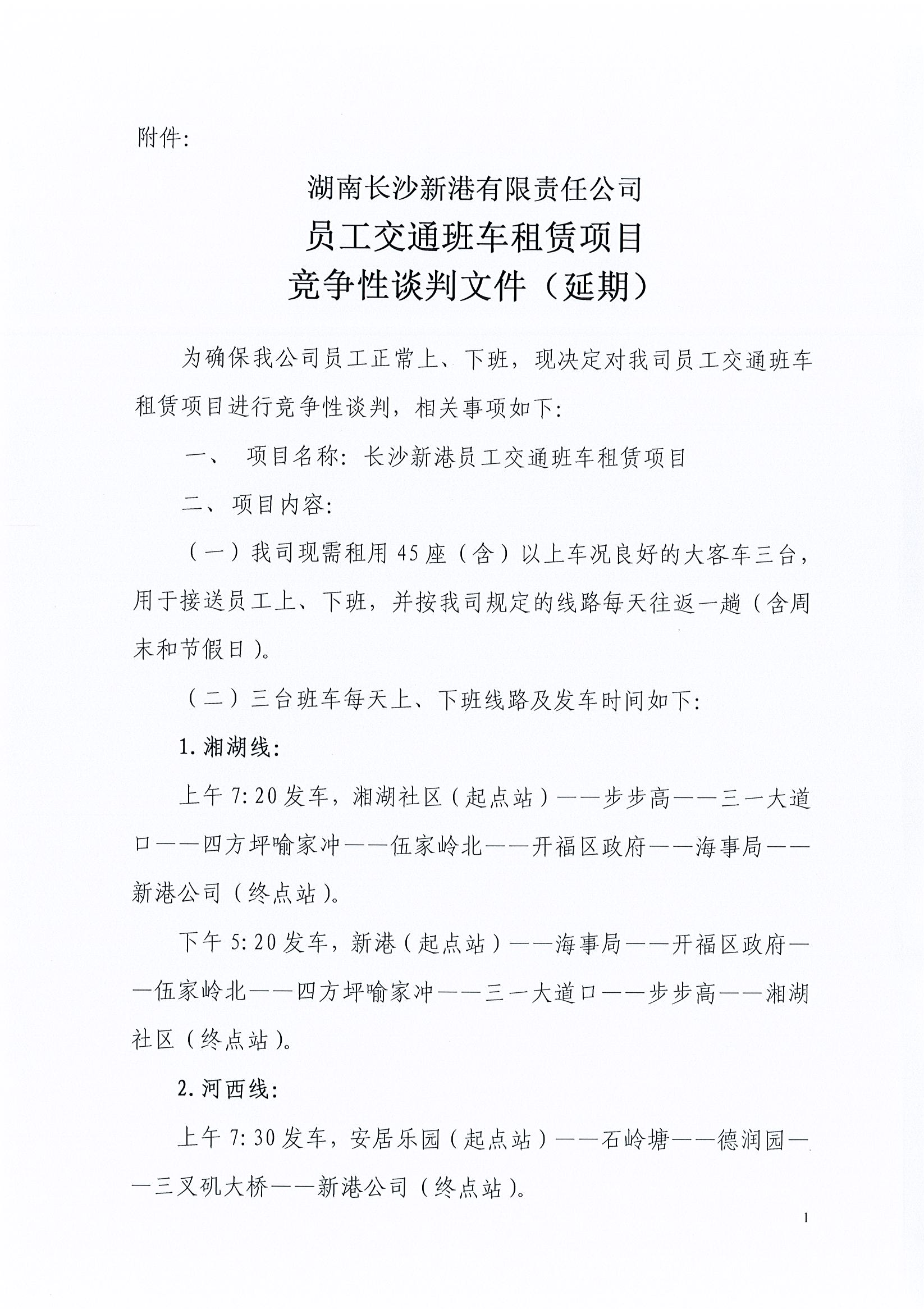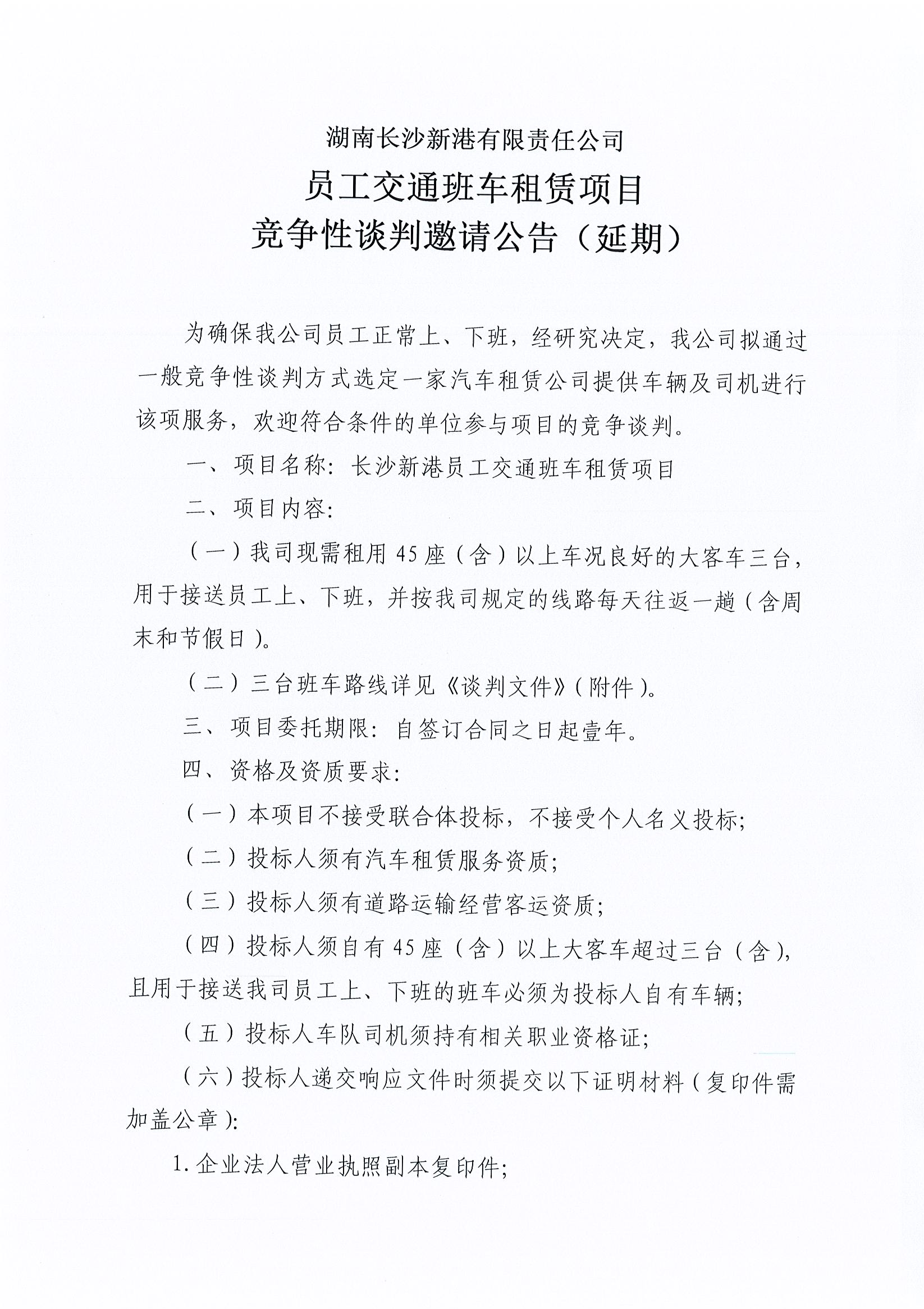 湖南長沙新港有限責(zé)任公司 員工交通班車租賃項(xiàng)目競爭性談判邀請(qǐng)公告(延期)