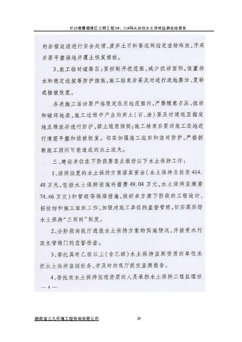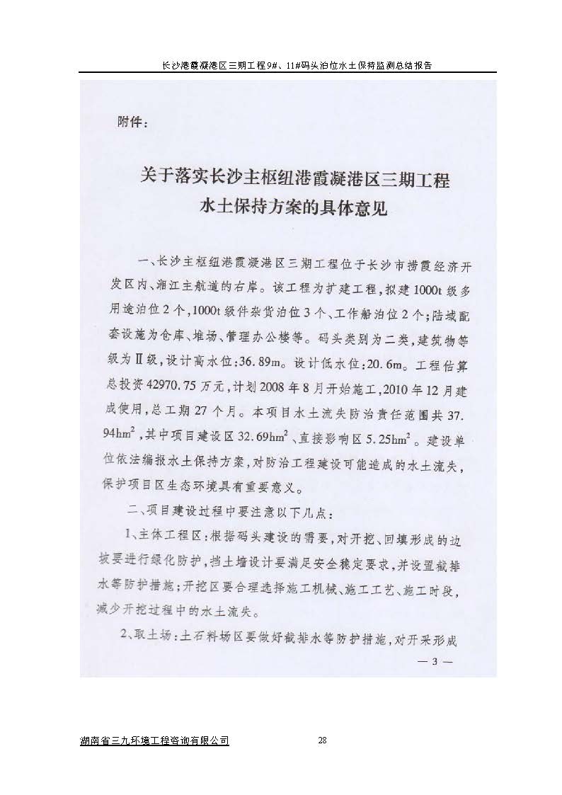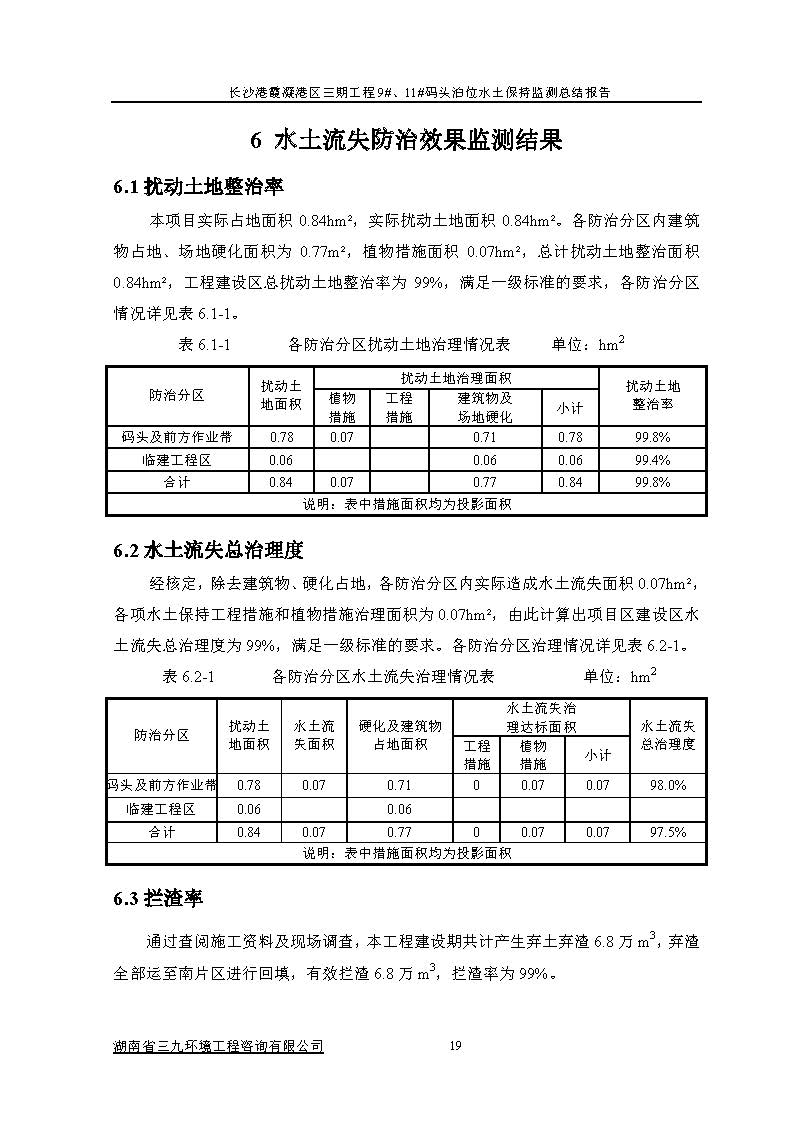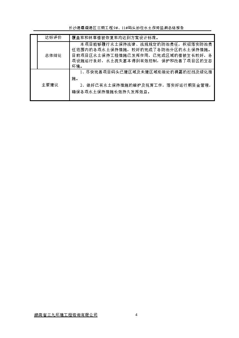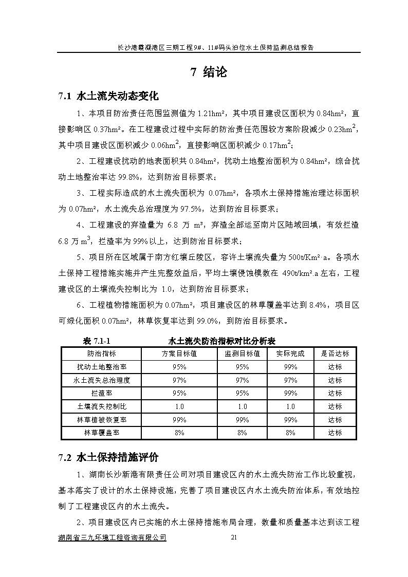 根據(jù)水利部關(guān)于加強事中事后監(jiān)管規(guī)范生產(chǎn)建設(shè)項目水土保持設(shè)施自主驗收的通知(水保(2017) 365號)、《湖南省水利廳關(guān)于下放部分生產(chǎn)建設(shè)項目水土保持方案審批權(quán)限的通知》(湘水辦[2017]116號)和《長沙市水務(wù)局關(guān)于簡化生產(chǎn)建設(shè)項目水土保持方案及水土保持設(shè)施驗收有關(guān)事項的通知》(長水發(fā)〔2017〕27號)規(guī)定,2018年7月3日,湖南長沙新港有限責任公司主持召開了長沙港霞凝港區(qū)三期工程9#、11#碼頭泊位水土保持設(shè)施驗收會議,會議成立了驗收組。 通過深入工程現(xiàn)場核查,并查閱相關(guān)檔案資料,驗收小組認為本工程積極落實了各施工區(qū)域的水土流失防治工作,水土保持設(shè)施質(zhì)量總體合格,水土流失防治指標達到了水土保持方案確定的目標值,符合水土保持設(shè)施竣工驗收的條件。驗收組一致同意長沙港霞凝港區(qū)三期工程9#、11#碼頭泊位水土保持設(shè)施通過驗收。經(jīng)驗收組與會議審議,形成了《長沙港霞凝港區(qū)三期工程9#、11#碼頭泊位水土保持設(shè)施自查驗收鑒定書》。
