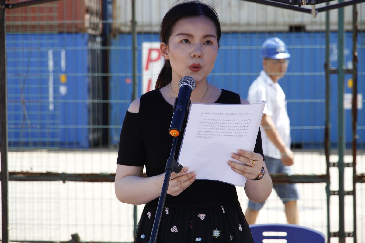 長沙新港辦公室副主任洪琳正在對此次演練進(jìn)行新聞發(fā)布。