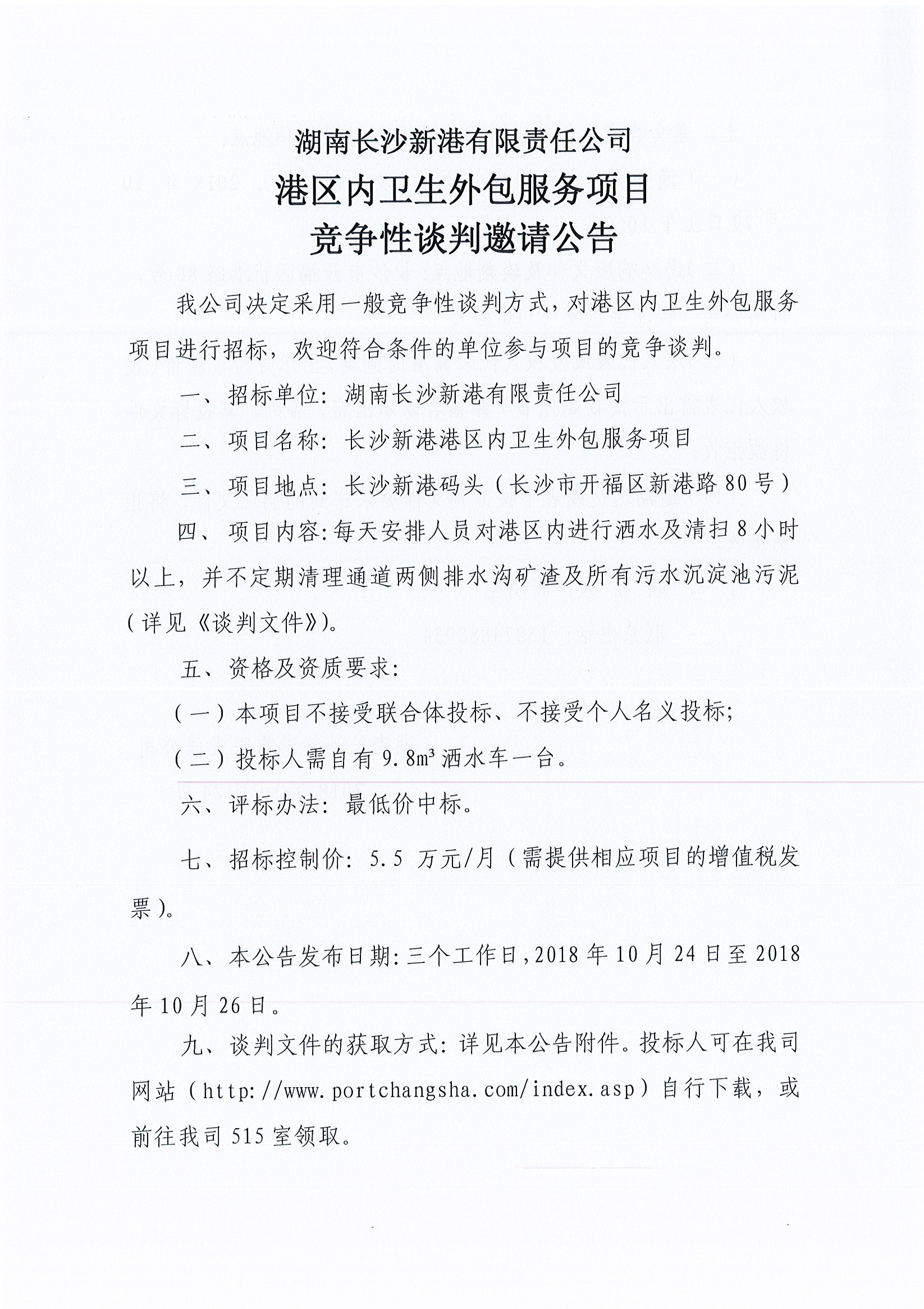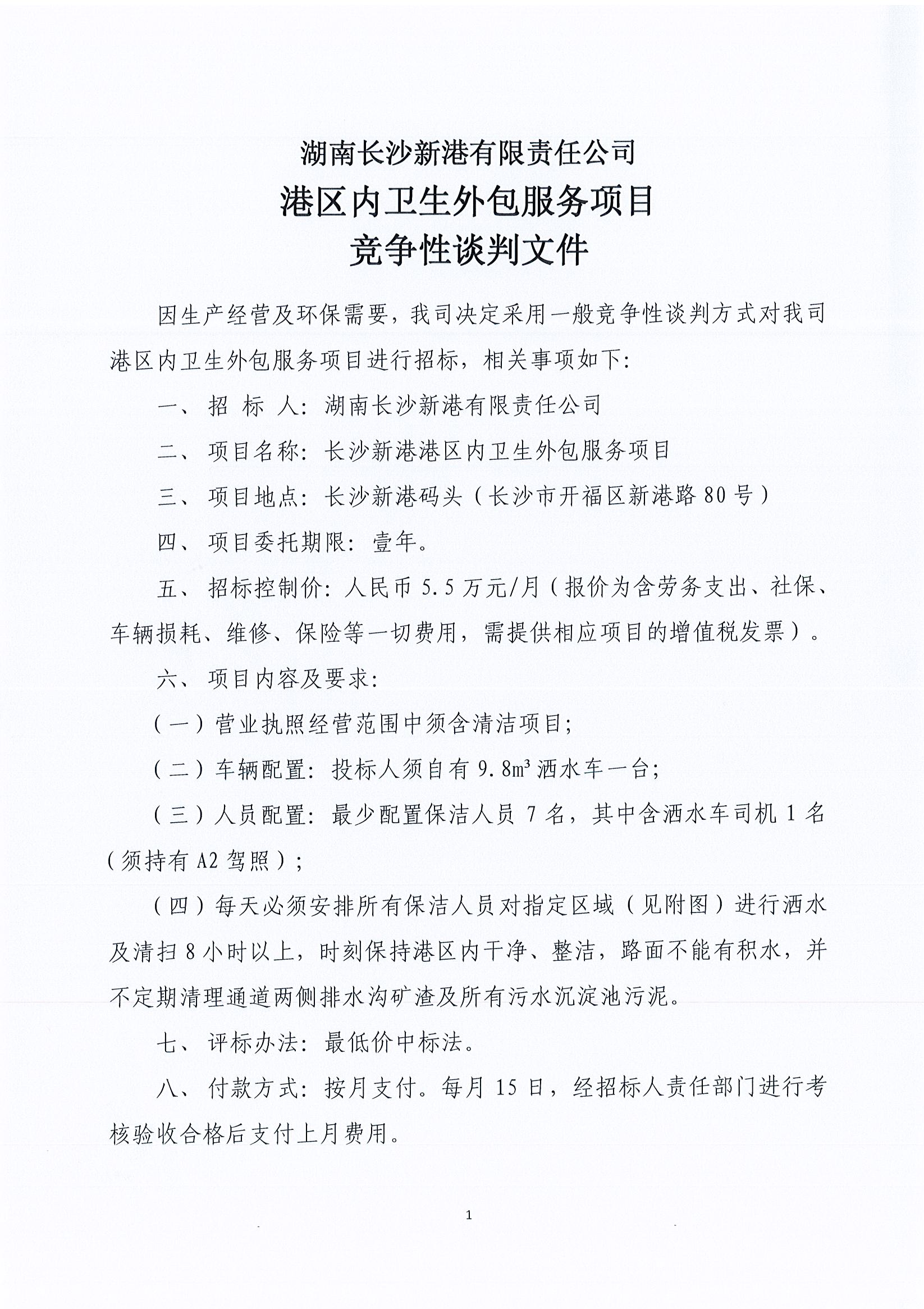 湖南長沙新港有限責(zé)任公司 港區(qū)內(nèi)衛(wèi)生外包服務(wù)競(jìng)爭性談判邀請(qǐng)公告
