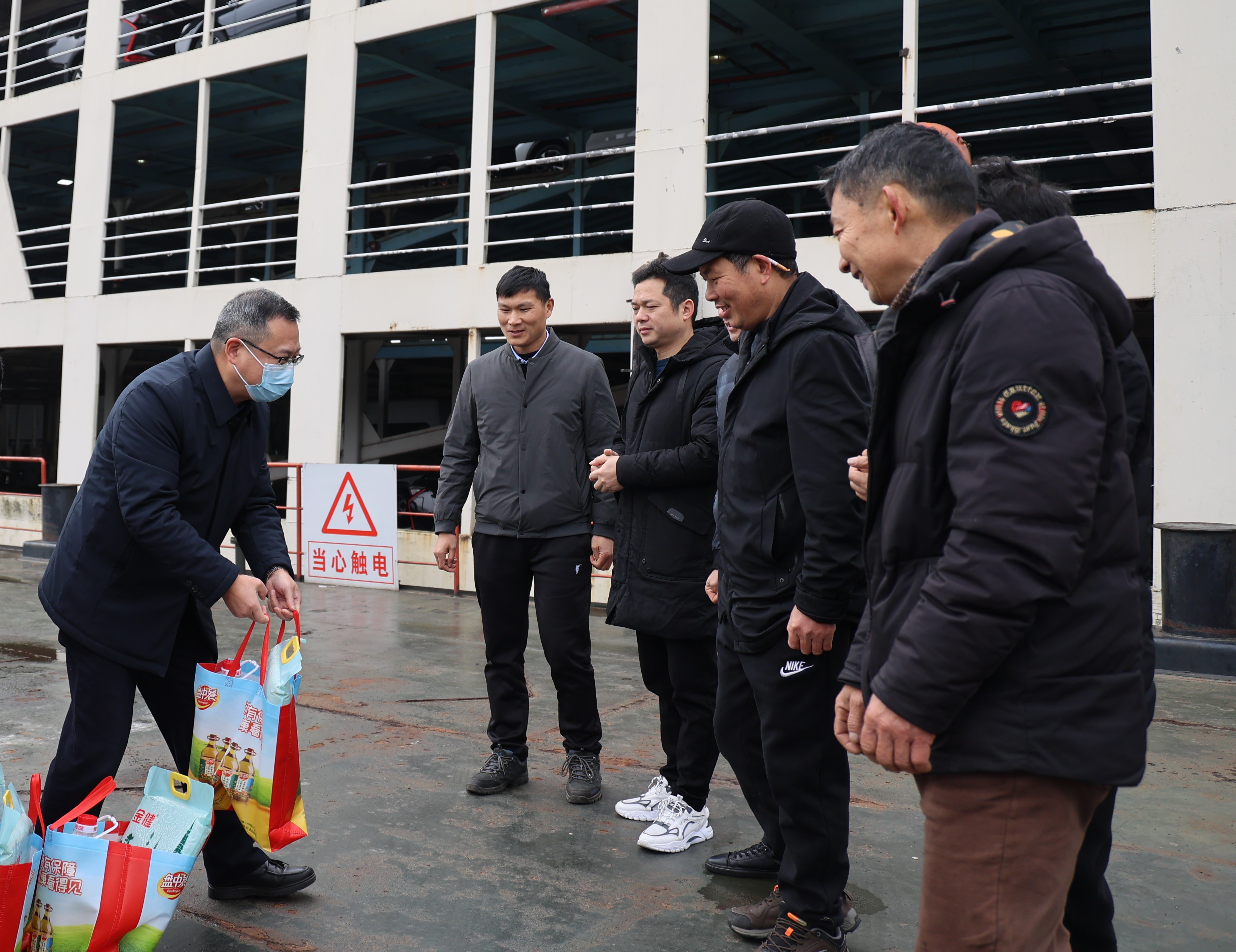 春節(jié)將至,歲寒情深。船員作為一個(gè)特殊的職業(yè)群體,工作和生活在船舶上需面對(duì)惡劣氣候、封閉環(huán)境、緊張工作等情況,常年不能回家,新春佳節(jié)更難以與家人團(tuán)聚。為了讓在港船舶在長(zhǎng)沙港度過(guò)一個(gè)歡樂(lè)祥和的春節(jié),2022年1月30日,新港公司黨委副書記、總經(jīng)理辛華,黨委委員、紀(jì)委書記黃紅星及副總經(jīng)理鄭美洲帶領(lǐng)市場(chǎng)營(yíng)銷部、生產(chǎn)運(yùn)營(yíng)部工作人員對(duì)已到港船舶進(jìn)行春節(jié)前的親切慰問(wèn),并給予安全提醒。  聲聲問(wèn)候顯真情,句句話語(yǔ)暖人心。船員們表示非常感謝來(lái)自新港公司的慰問(wèn)和節(jié)日祝福,在平時(shí)的工作中已感受到了新港人的高素質(zhì)和專業(yè)化水平,節(jié)日期間更感受到了新港公司優(yōu)質(zhì)服務(wù)和人性化服務(wù),讓漂泊在外的船員們感受到了滿滿的關(guān)懷和溫暖。 |