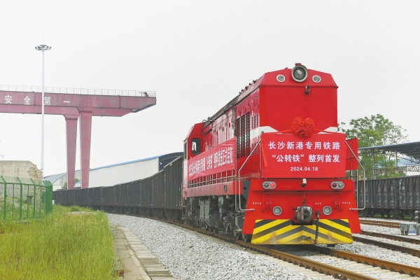 長沙新港“公轉鐵”整車首發(fā)(轉自湖南日報)