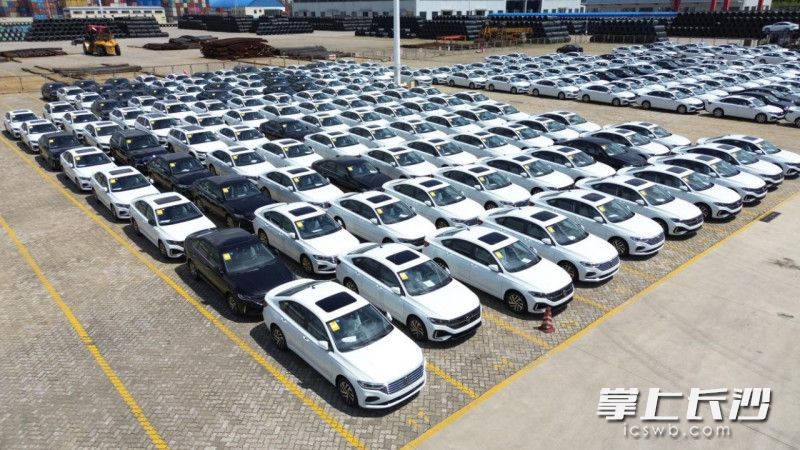 連日來,港口持續(xù)繁忙。在長沙新港汽車滾裝碼頭集港待裝船區(qū)域,整齊停放著近300臺上汽大眾汽車。這些汽車在長沙的工廠完成生產(chǎn)后,等待裝船發(fā)往上海、安徽、江蘇等地。