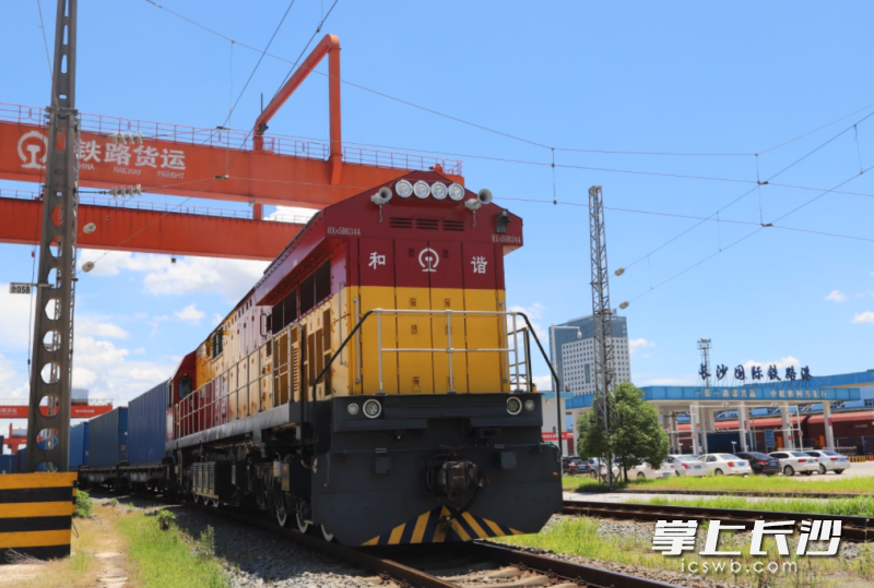 距長沙新港不到5公里的長沙北站,8月8日晚上10時許,一列中歐班列滿載著產(chǎn)自長沙的工程機(jī)械配件等貨物出發(fā),前往歐洲。