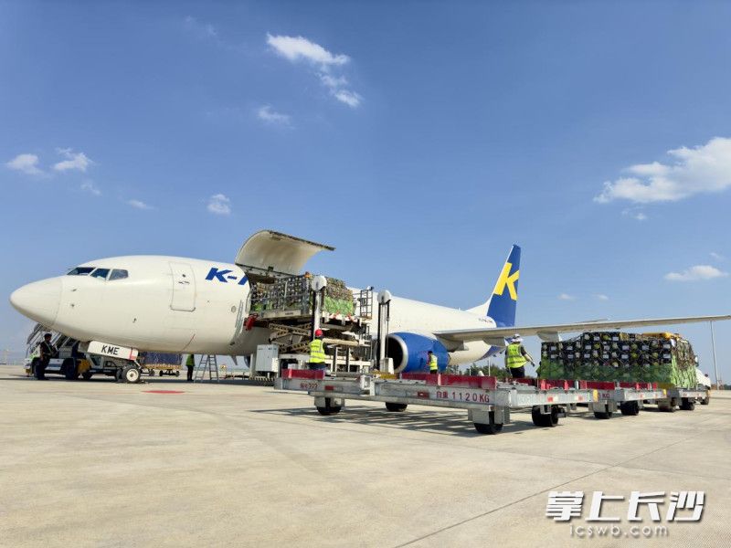 8月8日下午,一架滿載20噸進(jìn)口水果的波音737全貨機(jī)平穩(wěn)降落在長沙黃花國際機(jī)場。 長沙晚報通訊員 崔俊 供圖