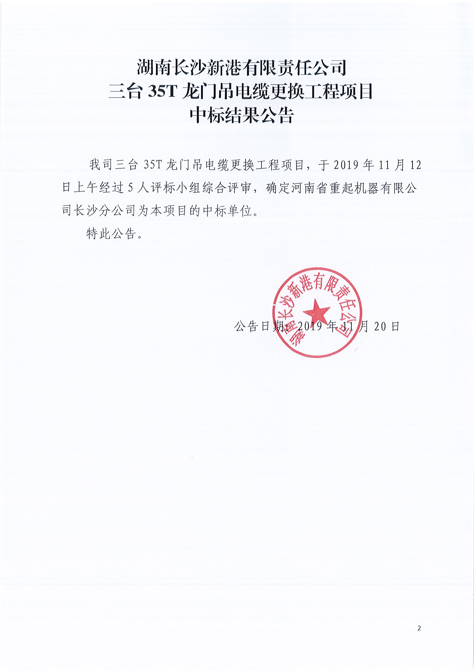 三臺(tái)35T龍門吊電纜更換工程項(xiàng)目中標(biāo)結(jié)果公告