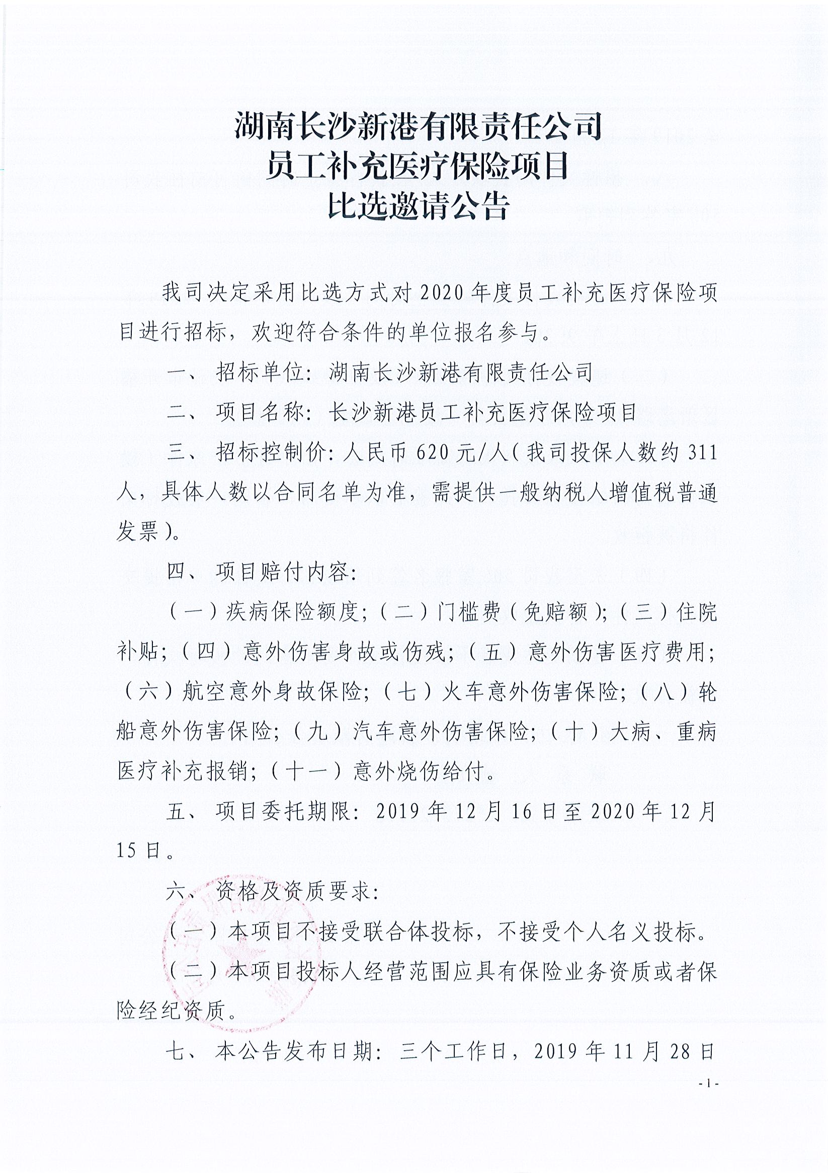 湖南長沙新港有限責任公司員工補充醫(yī)療保險項目比選邀請公告