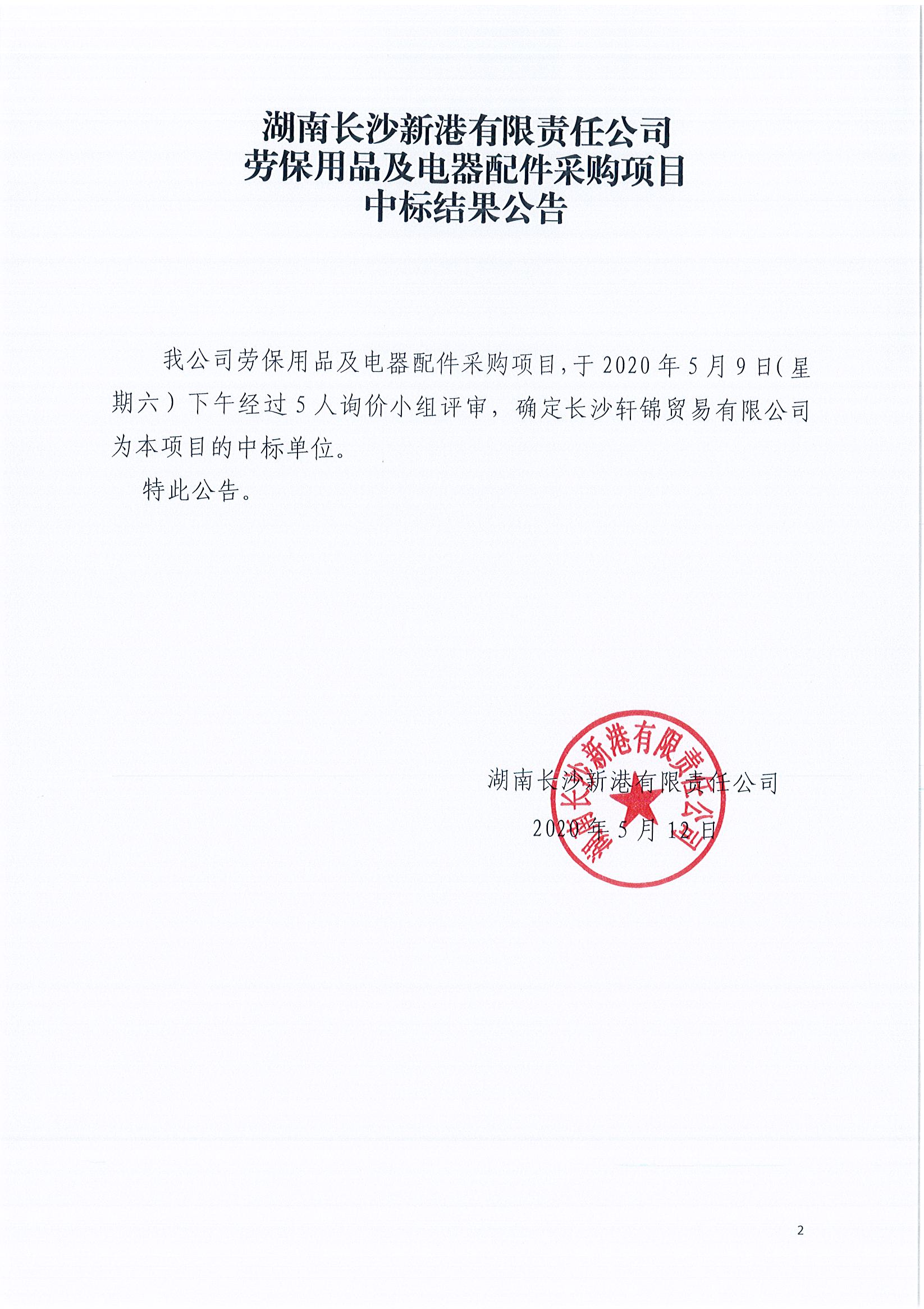 勞保用品及電器配件采購(gòu)項(xiàng)目《中標(biāo)結(jié)果公告》