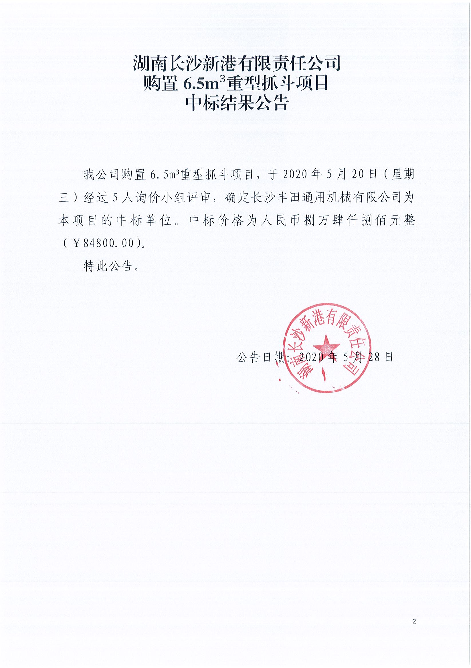 購(gòu)置6.5m³重型抓斗項(xiàng)目《中標(biāo)結(jié)果公告》