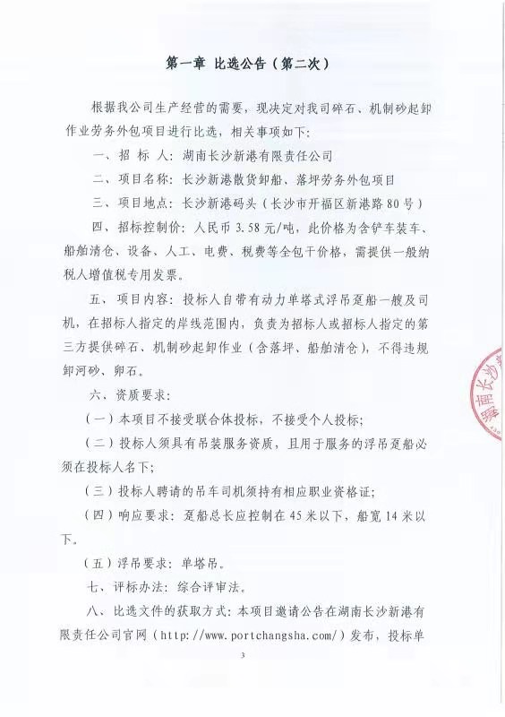散貨卸船/落坪勞務外包項目的比選公告