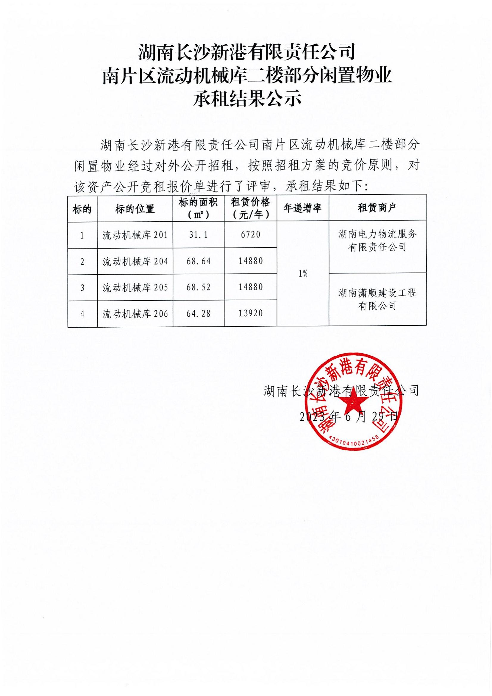 新港公司南片區(qū)流動(dòng)機(jī)械庫(kù)二樓部分閑置物業(yè)承租結(jié)果公示