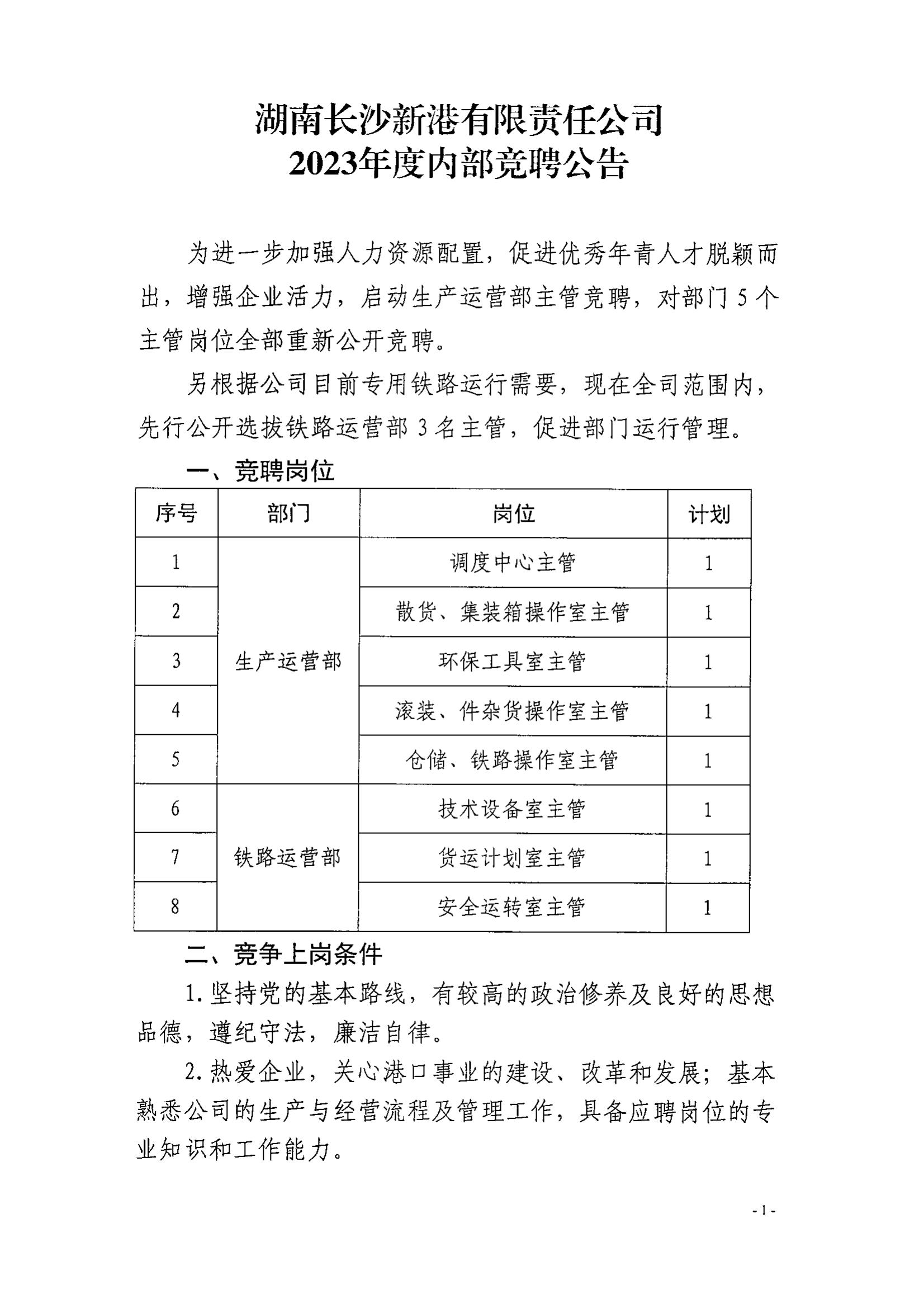 新港公司2023年度內(nèi)部競(jìng)聘公告