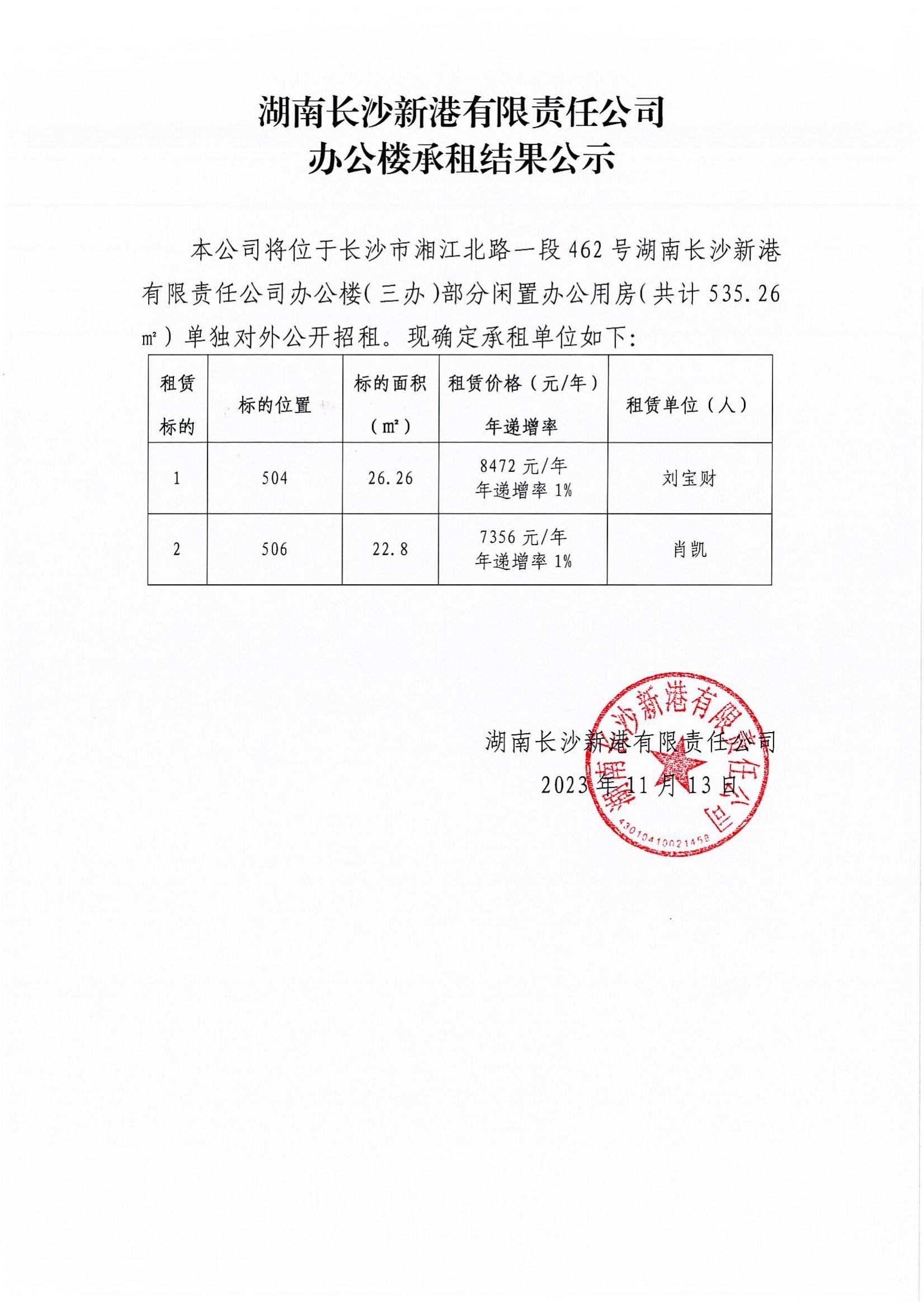 湖南長(zhǎng)沙新港有限責(zé)任公司辦公樓承租結(jié)果公示