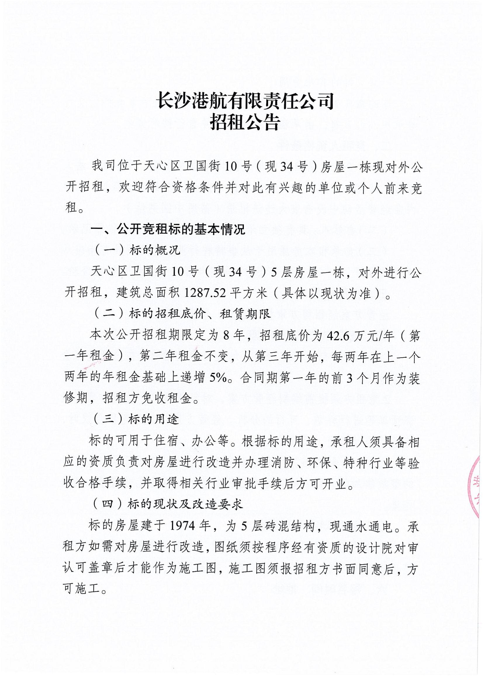 長(zhǎng)沙港航有限責(zé)任公司招租公告