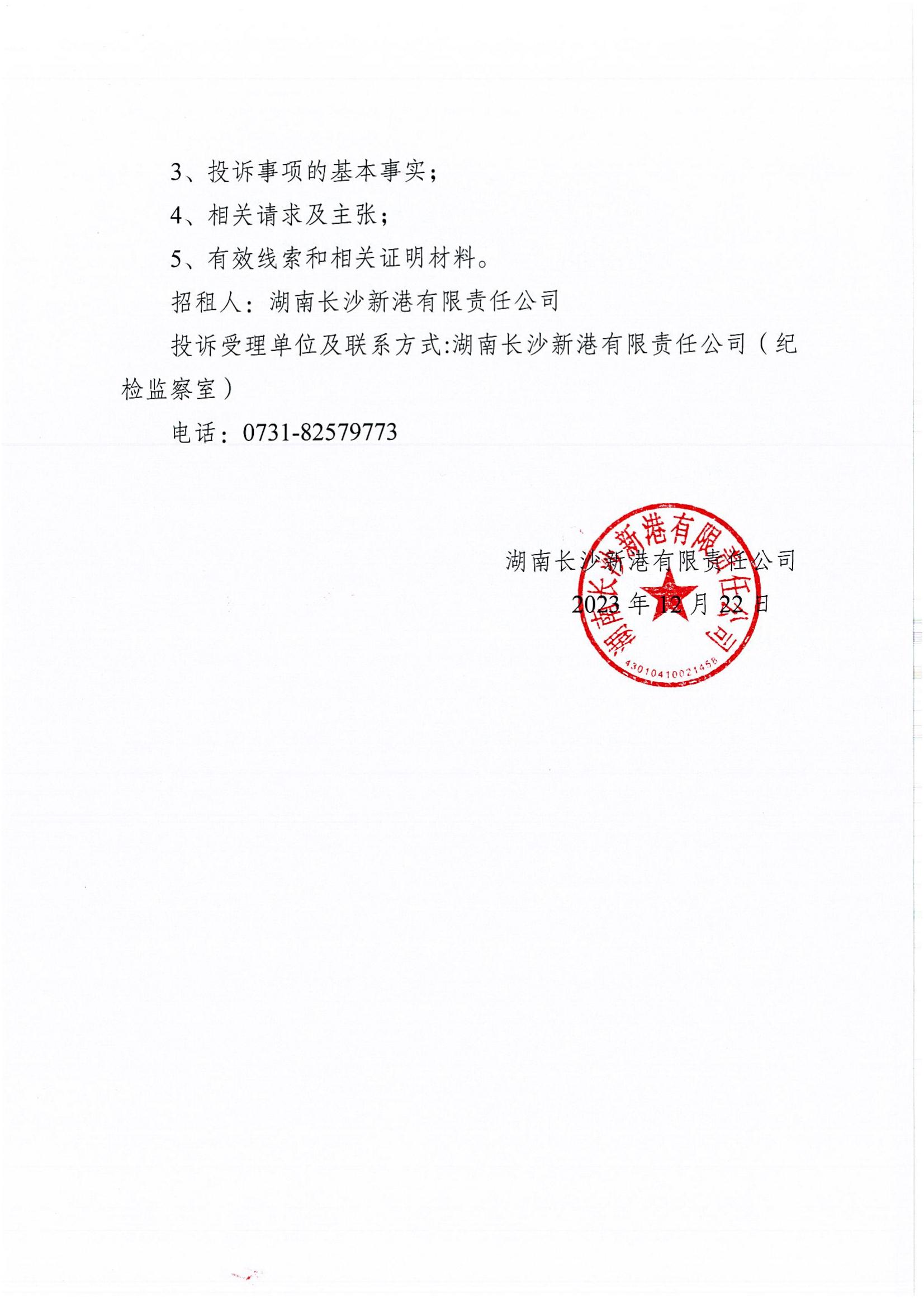 湖南長沙新港有限責(zé)任公司兩塊閑置土地承租候選人公示