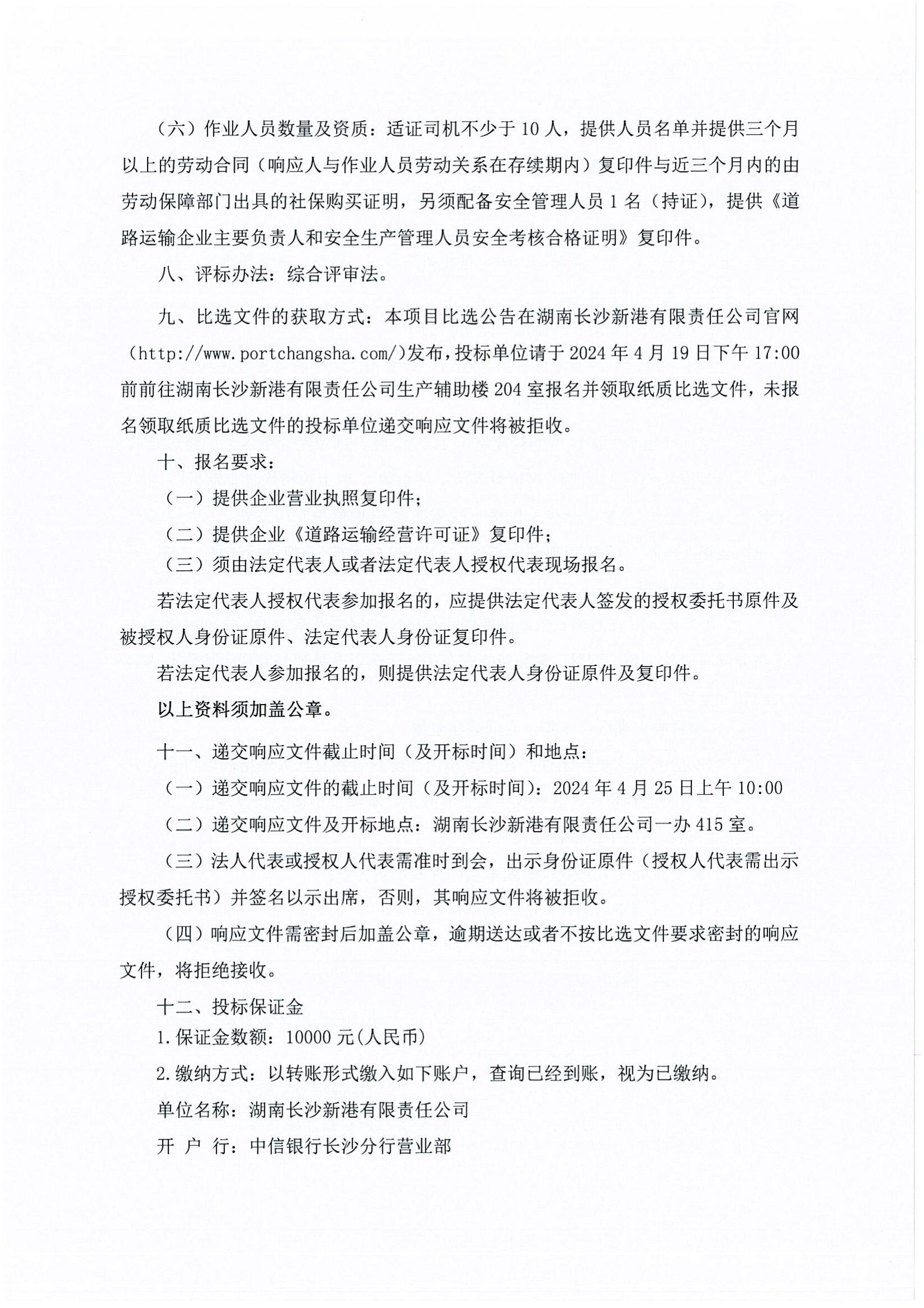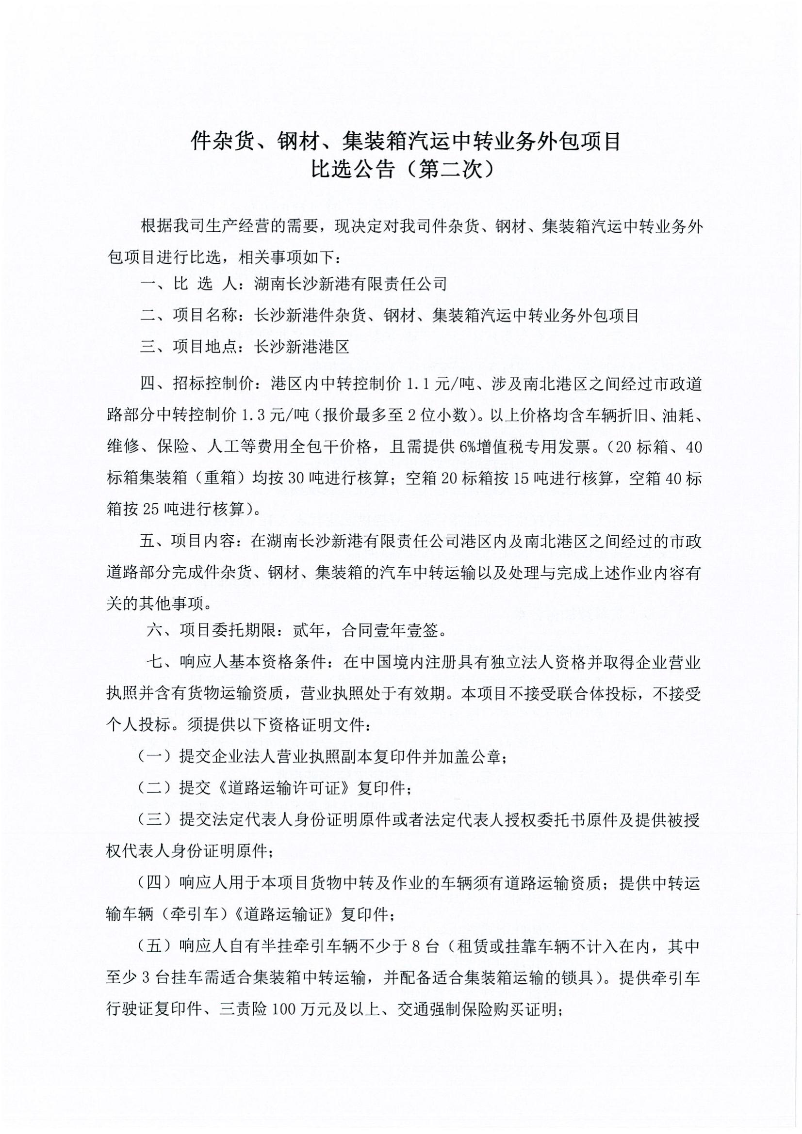 件雜貨、鋼材、集裝箱汽運中轉業(yè)務外包項目比選《比選公告(第二次)》