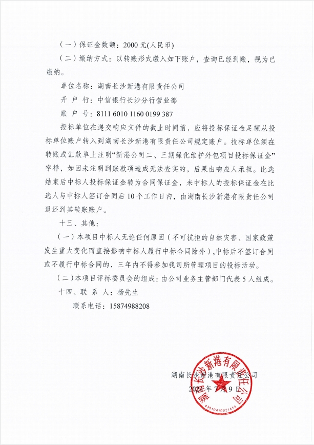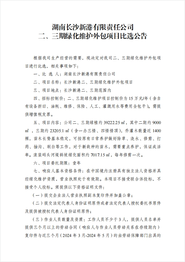 湖南長沙新港有限責(zé)任公司二、三期綠化維護外包項目比選公告