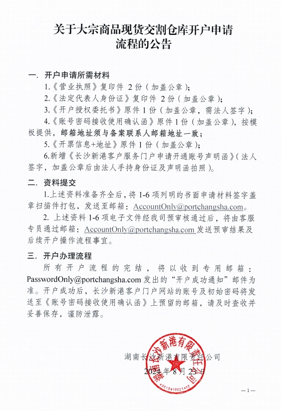 關(guān)于大宗商品現(xiàn)貨交割倉(cāng)庫(kù)開(kāi)戶申請(qǐng)流程的公告